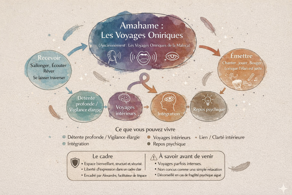 Les Voyages Oniriques d’Amahame sont des expériences collectives guidées par le son.