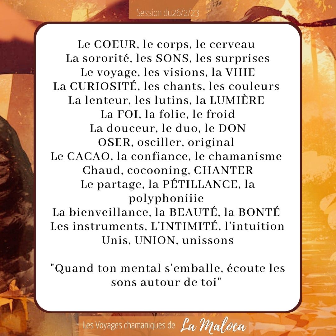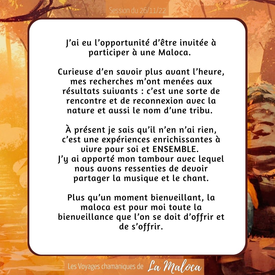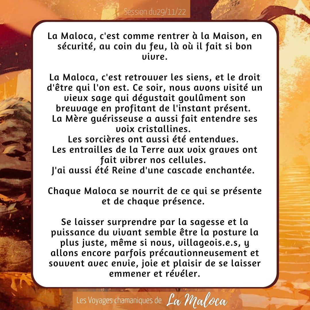 • Par respect pour ne pas faire d’appropriation culturelle nous n’utilisons désormais plus de terme chamanique, maloca, etc.