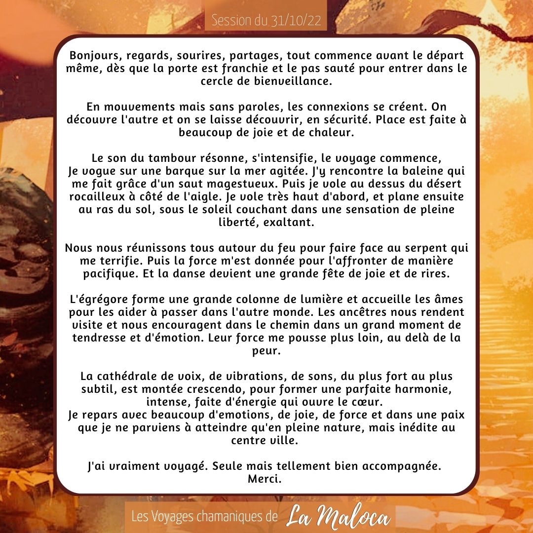 Retours écrits par des participants, chaque expérience est personnelle.